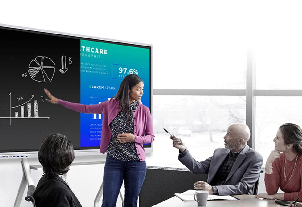 Il display a schermo piatto UHD 4K da 116 pollici ridefinisce la collaborazione del team sostituendo apparecchiature ingombranti con un'unica soluzione integrata, favorendo una comunicazione più efficiente.